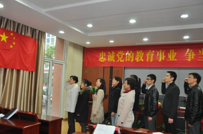 会上,党员教授、校老员工最喜爱的教师、江苏省青蓝工程中青年学术骨干带头人李霜博士,带领新入职的教师面向国旗庄严宣誓:“我立志做一名人民教师。努力做到:育人为本,敬业爱生;明德厚学,启智求真;沉毅笃行,创新创优;爱国荣校,奋斗终身”.