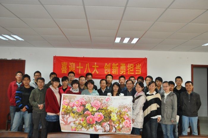 南工大太阳成集团tyc33455cc博士生第3党支部以师生同绘数字油画为载体,利用实验研究工作的空隙时间,挥毫添彩,绘制出了一幅“吉祥如意”图,向党的十八大献礼。