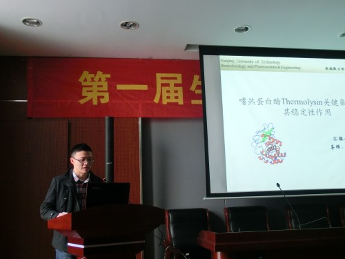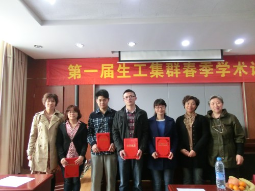 接下来,四位在“分子生物学”领域发过高影响因子文章的研究生应邀出席了本次学术论坛,并与大家分享了他们的研究成果;这四位同学分别是王冬及其研究成果“II型内含子基因敲出技术”,沈梦秋及其研究成果“高产光学纯(R,R)-2,3-丁二醇基因工程菌的构建及其应用”,朱富成及其研究成果“嗜热蛋白酶Thermolysin关键氨基酸及其稳定性作用”,邱晓鸾及其研究成果“水生弯杆菌甲酸脱氢酶的表征、改造及在辅酶再生中的应用”。根据以上四位同学的精彩报告,评委老师和现场同学对其进行了评分,最终结果:一等奖,朱富成;二等奖,邱晓鸾;三等奖,沈梦秋,王冬。