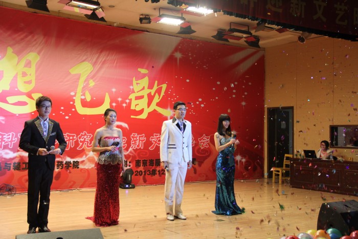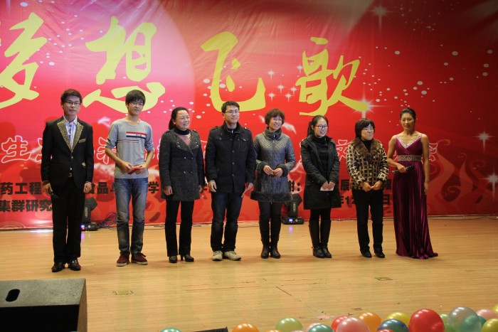 2013年12月16日晚7:00,浦江报告厅内人头攒动,整个会场座无虚席;观众席中充满了欢声笑语,温暖了冬日,洋溢着青春的气息。生工学科集群研究生会在此隆重举行了“海辰杯”“梦想飞歌”迎新晚会。海辰药业股份有限公司董事长兼总经理曹于平先生,米赞-特比大学董事长曼博瑞图教授,公司党委书记缪昌美、经理韦萍,食品与轻工公司经理徐虹,药公司党总书记何冰芳教授,江苏省药物研究所所长、药公司常务副经理卢定强教授,海辰药业副总经理姚晓敏、总经理办公室主任李进,太阳成集团tyc33455cc副经理姜岷、李振江教授等应邀出席本次晚会,与同学们一起享受“梦想飞歌”为大家带来的感动与欢乐。
