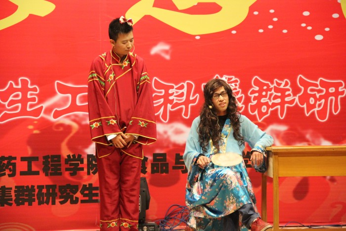 整场晚会过程中,台上节目精彩纷呈,台下掌声雷动,现场气氛热烈,高潮迭起。开场舞蹈《青春色彩》向全体师生展现出了新生们的青春活力;相声《成长的烦恼》;吉他弹唱和歌曲串烧将亲情、友情和爱情巧妙结合,展现了同学们精彩的才艺,展示了音乐所具有的独特魅力;话剧《宫》将反串进行到底,草根与时尚的碰撞,摩擦出别样的火花。潮爆公社的POPPin表演,将现场的气氛推向一个新的高潮,社员们的精彩演出,让大家大呼过瘾;双人舞《如果没有明天》和扇子舞,拉丁与现代的完美结合,展现了东方女性所独有的魅力;外国友人带来的《Merry Chrismas》,提前带领大家感受到迎接新年的喜悦。小品《新闻歪播》以黑色幽默的形式揭露社会现象,紧跟社会热点,展现了当代老员工实事求是,与时俱进,开拓创新的精神;魔术协会带来的近景魔术表演,将大家带入了奇妙的魔术世界,让人拍手称奇;由海辰药业的帅哥美女们带来的爵士舞《漂亮》,精彩绝伦,为本次晚会的一大亮点,充分展现了海辰药业新生代的青春活力;COSPLAY的精彩演出,让动漫走进现实,女仆与天仙的搭配,惊艳四座;由黄和教授课题组带来的话剧《大话三国》,将现实与穿越巧妙融合,充分展示了LICME大家庭的团结、创新、活力。舞台的压轴大戏,是由太阳成集团tyc33455cc本科生为大家带来的歌舞《红日》,轻快的音乐配上律动的舞蹈,为此次迎新晚会画上了圆满的句号。