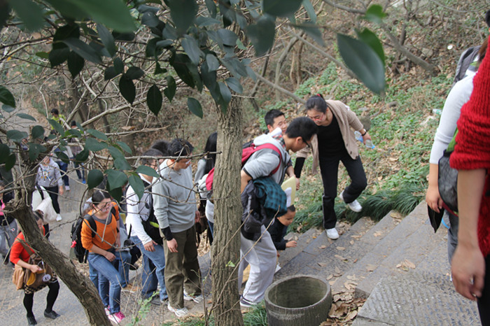 本次毅行活动以小组为单位,分成七个小组,共设置一、二、三等奖各一名,每个小组的所有成员全部到达山顶才算最终胜利,其他未得奖的同学也都会获得一份精美的小礼品。本次活动的路线是从玄武湖公园直至紫金山头驼岭。在玄武湖公园同学们蓄势待发,像离弦的箭一般跃跃欲试,经过30多分钟后终于到达了紫金山脚下。当登山活动真正开始时,大家才感觉到山路毕竟不比平路,对于长期在实验室工作和学习的我们来说,攀爬一段时间都会出现体力不支的情况,然而,一路上,并没有消极的抱怨声,只有昂扬的激情和坚持到底的决心。男生们也十分照顾体力稍逊的女生,他们积极地帮女生拎包,时刻注意着女生的安全,并体贴的让女生走在队伍中间,大家还十分注意劳逸结合,如果有人感到劳累就会停下稍作休息。同学们望着陡峭的山路,没有一个有退缩的心理,一路上都充满了同学们互相关心,互相激励的声音。看着越来越近的山顶,尽管有些同学已经筋疲力尽,但还是咬紧牙关爬了上去,体验并分享了登顶后的喜悦。当到达山顶的那一刻,望着自己所走的路,才发现原来再大的困难只要敢于面对、敢于攀爬,就没有过不去的。