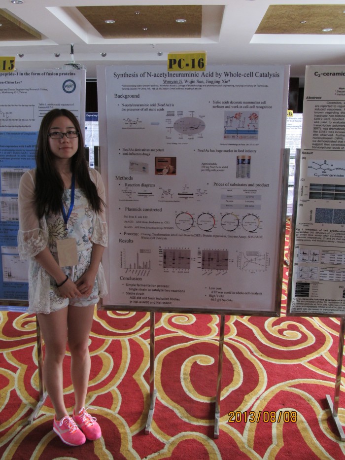 8月8日上午,大会主办方安排了4场大会报告,来自韩国Sun Moon University(鲜文大学)的Hei Chan Lee教授做了题为:“National Capabilities for Disease Surveillance, Detection and Diagnosis and Global Cooperation Network of Republic of Korea”的主题报告。同日下午主办方还安排了分会场口述汇报交流以及海报展示交流。公司与会师生各自作了海报展示。其中,吴昊老师所做“Enhanced acetone-butanol-ethanol fermentation integrated with pervaporation using pH control strategy and immobilized cells”海报展示;研究生孟洁所做“The Research of Constructe the Recombinant Corynebacterium glutamicum to Produce UMP ”海报展示,均被大会评为最佳poster。