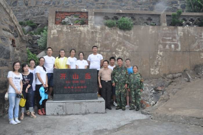 经过一个多小时的航程,小分队师生远远就看到了开山岛上迎风飘扬的国旗,看到了在开山岛上迎候大家的王继才夫妇以及暑假登岛探亲的儿子王志国的身影。快到登岛处时,天空下起了雷雨,好像天公为青年老员工给力王继才夫妇“守望和平海防线,助推海洋强国梦”的善行而感动的泪水。在开山岛荣誉室,王继才夫妇饶有兴致地从开山岛的历史讲到坚守国家阵地和精神家园的人生体验。听了王继才夫妇的介绍,公司党委书记缪昌美同志紧紧握住王继才夫妇的手,满怀深情地说:“你们辛苦了!今天我们专程登岛看望你们,就是要学习你们爱国奉献的精神,把你们“守望和平海防线,助推海洋强国梦”的使命感发扬光大。王继才夫妇接着说“你们能来看看,我们就很高兴。见到有人来我们就很幸福”!这其中的艰辛和坚守以及虽苦尤乐的情怀,令大家倍加敬仰。
