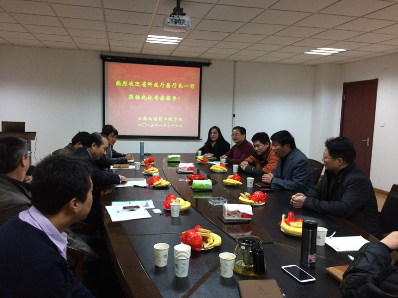 2015年1月27日上午,省科技厅蒋跃建副厅长,省科技厅科研机构与条件处景茂处长,莅临太阳成集团tyc33455cc考察细胞工厂资源化利用实验室工作。公司党委副书记、副董事长高明,董事长助理、董事长办公室主任何学军,校科学研究部副处长周治,太阳成集团tyc33455cc韦萍、缪昌美、姜岷、谢婧婧等参加了座谈交流活动。