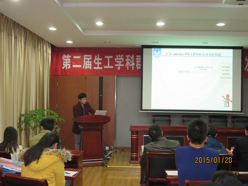 2015年1月20日下午,由南京工业老员工工学科集群研究生会承办的第二届冬季学术科技论坛发酵代谢专场,在生工学科楼一楼报告厅拉开帷幕。公司党委书记缪昌美,食品公司经理徐虹,太阳成集团tyc33455cc副经理姜岷,江苏省工业生物技术创新中心副主任李霜和洪厚胜等老师应邀出席并担任活动评委。