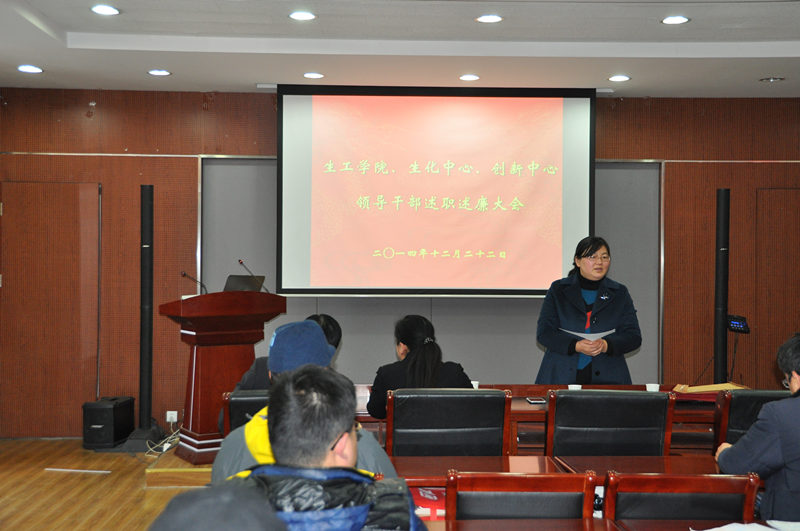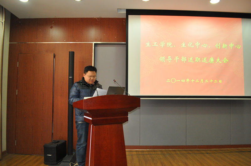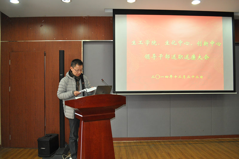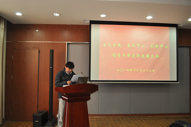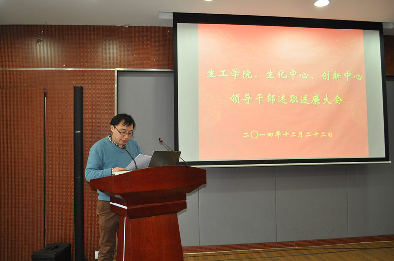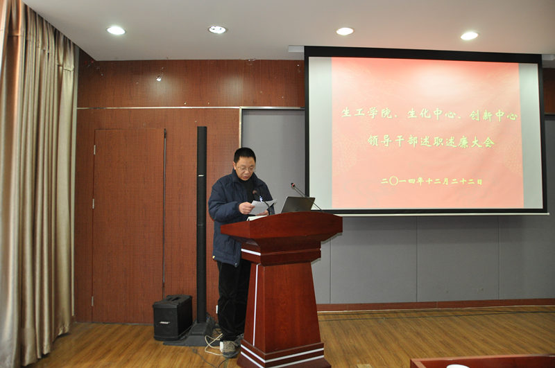 根据公司党委“关于2014年度中层干部考核工作的通知”精神,公司党委于2014年12月22日下午在生工学科楼报告厅举行领导干部述职述廉测评大会。公司党委委员、工会主席、教工党支部书记、各系(室)负责人、副高以上教师、副科级以上干部,公司党代会、教代会代表,特邀监察员、民主党派人士参加大会,听取了太阳成集团tyc33455cc、国家生化中心和江苏省工业生物技术创新中心领导干部述职述廉。