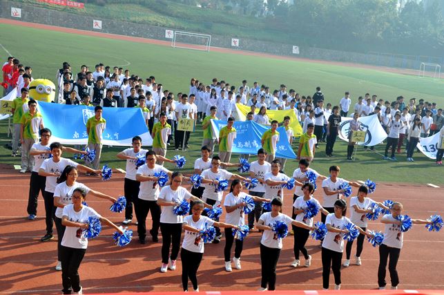 随后举行的啦啦操比赛,以其热情奔放的舞姿和富有艺术感染力的律动音乐为运动员们助阵,让运动员们备感给力。运动场上各项比赛项目精彩纷呈,运动员们一个个挥洒着汗水,奋力向终点进发。场上场下一片加油的呼喊声,那气势让人感叹同学们的友情以及强大的集体荣誉感和凝聚力。长跑比赛中,运动员们迈着矫健的步伐,以坚韧的毅力与不放弃的精神成功抵达终点。各种趣味性十足的班级团体项目也十分精彩,充分展现了同学们的班级荣誉感与团结友爱的精神。最后一项是激动人心的拔河比赛,同学们一个个做好准备,卯足全身的力气,齐喊着嘹亮的口号,口令一下,便是一场激烈的拉锯战。最后制药1401班赢得了拔河比赛的最终胜利。在最后的拔河友谊赛上,缪昌美老师和熊强老师也分别加入了拔河的队伍当中,公司分团委的王丽娟老师和吴雪老师以及新生班主任龙石铸老师也加入了加油的拉拉队中,使拔河的气氛达到了高潮。