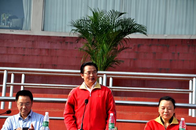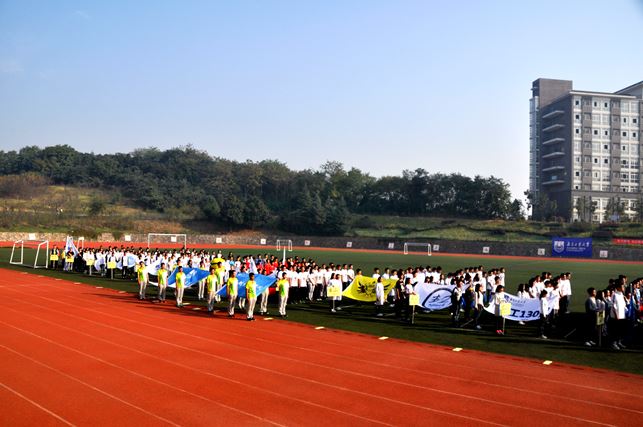 金秋的校园,天高气爽,阳光和煦。10月26日,太阳成集团tyc33455cc第二届运动会在江浦校区体育场精彩举行。其鲜明的主题“走下网络,走出宿舍,走向操场,锻炼体魄,分享青春,共筑未来”,生动地彰显了其鲜明的特征:朝气蓬勃的体育盛会、团结拼搏的体育盛会、健康快乐的体育盛会!出席开幕式的公司领导有缪昌美、韦萍、熊强、李振江、郭凯和校体育部的四位任课老师等。开幕式由公司党委副书记熊强老师主持。公司党委书记缪昌美老师致辞并宣布运动会开幕。