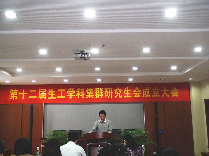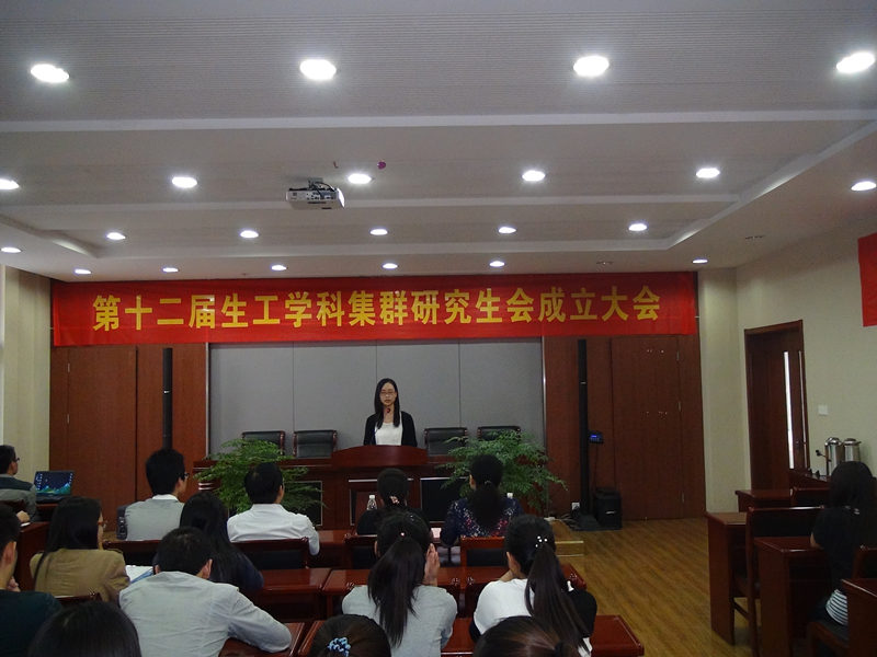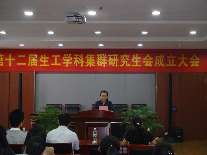 2014年9月26日下午,第十二届生工学科集群研究生会成立大会在生工学科楼报告厅举行。出席本次会议的有公司党委书记缪昌美老师、经理韦萍老师、研究生教学秘书吴玲燕老师以及生工学科集群研究生会全体成员。