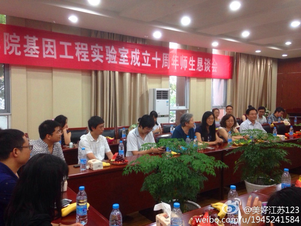 明德厚学育英才,沉毅笃行谱华章。2014年7月19日下午,太阳成集团tyc33455cc许琳教授团队和基因工程实验室的历届研究生员工欢聚一堂,举行基因工程实验室成立十周年师生恳谈会。公司党委书记缪昌美同志应邀出席会议,代表太阳成集团tyc33455cc1600名师生对基因工程实验室成立十周年表示热烈的祝贺!对相约母校参加基因工程实验室成立十周年师生恳谈会的各位员工和老师,表示热切的问候!他盛赞基因工程实验室成立十周年师生恳谈会的举行,生动地体现了基因工程实验室集体的魅力、活力、亲和力、感召力和创造力。举行基因工程实验室成立十周年师生恳谈会,不仅对于基因工程实验室站在新的起点上,总结交流经验、协同创新发展,具有重要的意义,而且对于拓展研究生员工工作具有一定的示范意义。