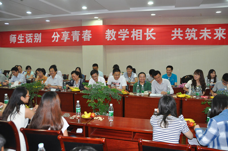 栀子花开芳草碧,与君离别共此时。6月26号下午,生工学科集群研究生会以“感恩感奋,筑梦启航”为题,在生工学科楼A1报告厅举行2014届研究生毕业茶话会。太阳成集团tyc33455cc缪昌美、韦萍、姜岷、朱颐申、李晖、陈集双、刘晓宁、韩世清、蔡恒、唐拾贵、周俊、甘海峰、吴玲燕等老师和毕业研究生代表应邀出席了茶话会。