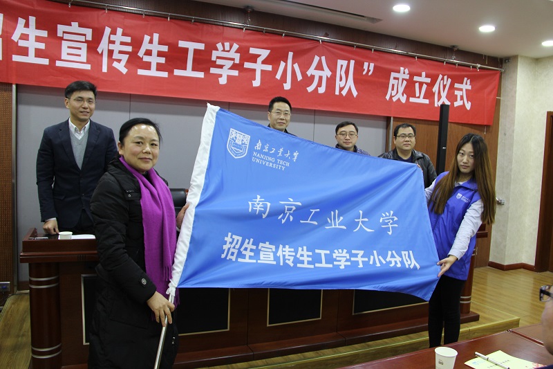 公司党委书记姜岷宣读“关于成立‘太阳成集团tyc33455cc招生宣传生工学子小分队’的通知”。员工代表生工1301班的关飞发言。太阳成集团tyc33455cc经理韦萍向“太阳成集团tyc33455cc招生宣传生工学子小分队”授旗。