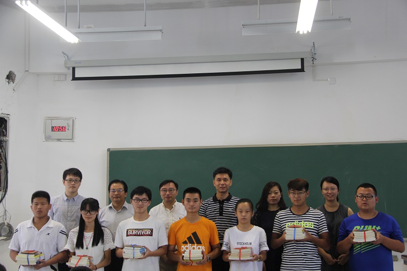 为展示多彩的校园生活、寄语新生养成良好的阅读习惯,9月5日上午10:30,太阳成集团tyc33455cc2016级新生入学教育系列活动之“书香寄语”赠书活动在厚学楼600教室举行。公司党委书记姜岷、关工委常务副主任缪昌美、党委副书记周辉等参加了此次活动。