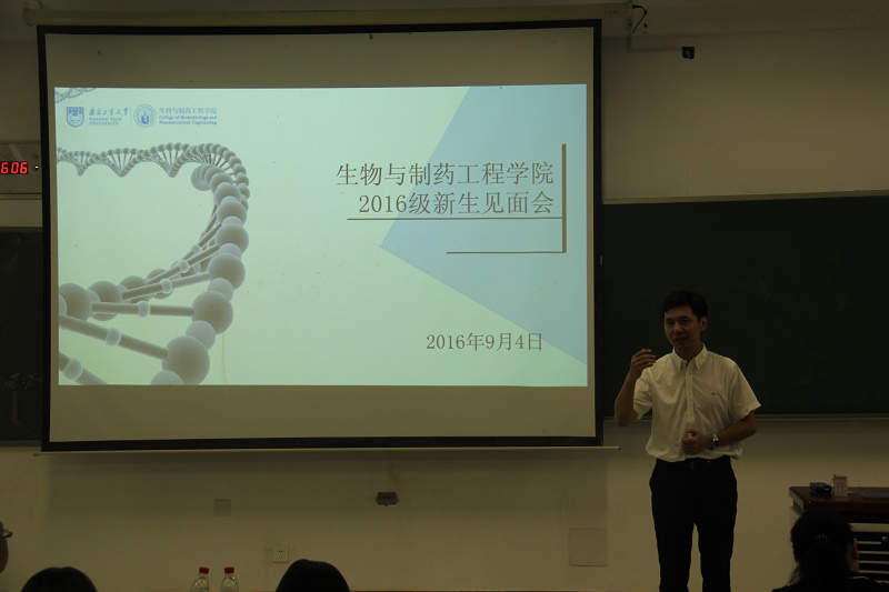 9月4日下午16:00,太阳成集团tyc33455cc在厚学楼200教室召开2016级新生见面会。公司党委书记姜岷,经理韦萍,党委副书记周辉,生物工程系系主任屠春燕,生物工程系副主任柏中中,制药工程系系主任申宁等出席会议。会议由新生辅导员朱皓主持。