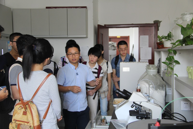 座谈会之后,来访同学们在太阳成集团tyc33455cc员工骨干的带领下参观了姜岷教授实验室。实验室马江锋博士后为同学们讲解了酶工程研究未来发展前景以及课题组近期成果,并为同学们演示了冷冻真空干燥机、超净工作台的使用方法和作用。武汉大学实践团队成员对太阳成集团tyc33455cc的科研和学习环境十分向往。