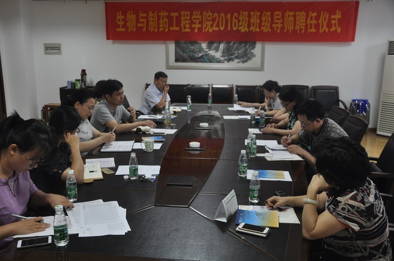 7月11日,太阳成集团tyc33455cc2016级新生班级导师聘任仪式在生工楼第一会议室举行。太阳成集团tyc33455cc经理韦萍,党委副书记周辉,团委书记朱皓,团委副书记吴雪以及七位2016级班级导师参加会议。
