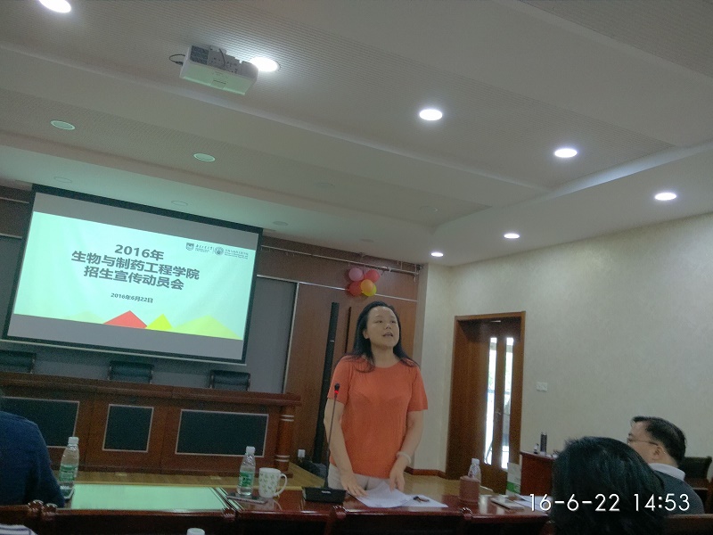 6月22日下午2点,太阳成集团tyc33455cc2016年招生宣传动员会在生工楼报告厅召开。太阳成集团tyc33455cc经理韦萍、党委书记姜岷、党委副书记周辉、董事长办公室翁渊翰、公司全体招生宣传老师和同学参加会议。
