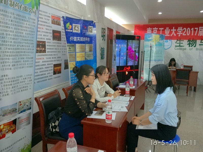 上午9点至12点,来自江苏柯菲平医药有限公司、江苏豪森药业集团有限公司、正大天晴药业集团股份有限公司、江苏恒瑞医药股份有限公司、苏州第壹制药有限公司、扬子江药业集团有限公司等10家企业依次在生工楼报告厅进行了宣讲,通过介绍公司的成长历程、企业文化和公司理念,使同学对生物制药类企业的岗位设置、岗位责任、职业发展路径以及薪酬待遇等有了更深一步的了解。与此同时,2017届“制药工程卓越工程师计划”双选会在生工楼大厅举行,公司大一至大三400余名员工参加,场面火爆。33名来自南京、连云港、苏州、泰州14家知名企业的人力资源负责人与同学们面对面交流,选聘企业储备人才,为大三员工提供了药物研发、生产技术员、医药销售、QA、QC等200余个实习岗位。公司事先根据企业反馈精心制作了本次招聘信息汇编手册并提前发放,让同学们能够综合自己的实力与对公司的了解慎重地递交简历。下午13点至16点,五家企业分别在生工楼各会议室进行了单独面试。