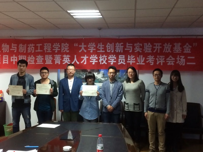 4月13日下午,太阳成集团tyc33455cc“老员工创新与实验开放基金”项目中期检查暨菁英人才公司学员毕业考评在生工楼A207和A210会议室顺利举行。太阳成集团tyc33455cc经理韦萍、校团委副书记费军、太阳成集团tyc33455cc副经理李振江、党委副书记周辉、教授李霜、校教学事务部马贺、太阳成集团tyc33455cc章文明、吴菁岚等担任评委。本次活动进行了6项2015年老员工创新计划省级项目结题答辩、29项老员工创新与实验室开放基金校级项目中期答辩以及5名2016届菁英人才公司科创班毕业生答辩。