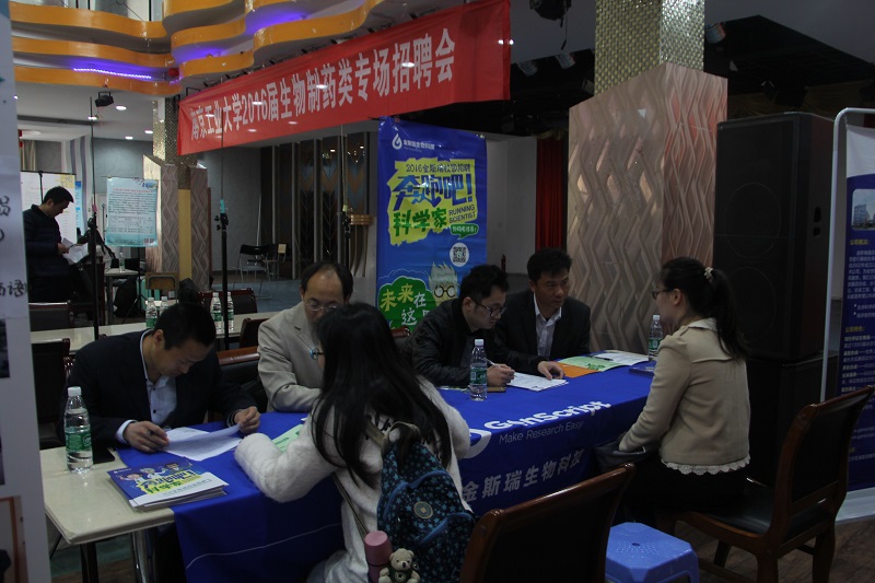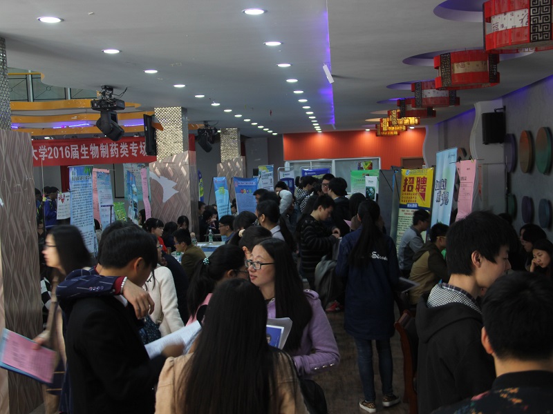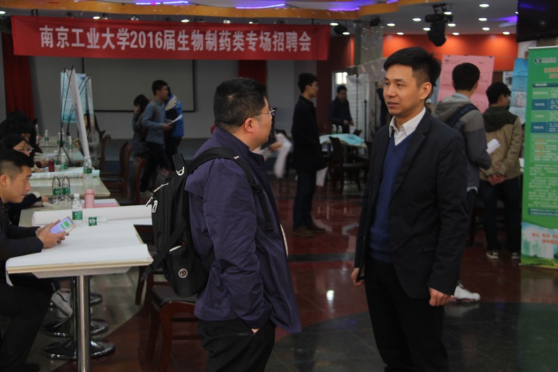 3月30日上午9:00—11:30,太阳成集团tyc33455cc在公司老员工活动中心举办“2016年生物制药类专场招聘会”。泰州市人才服务中心招聘部部长方钧、泰州市医药高新区招聘科科长蔡翔率领泰州地区16家企业组团参会,柯菲平医药、正大天晴药业、豪森药业、扬子江药业、诺尔曼生物技术等24家企业参会,太阳成集团tyc33455cc全体毕业生、研究生和部分大三员工参会。