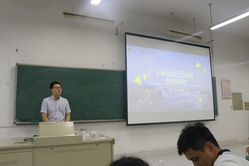 9月3日下午15:30,太阳成集团tyc33455cc在仁智301教室召开2017级新生见面会。公司党委书记韦萍、党委副书记周辉、副经理贾红华、生物工程系主任屠春燕、制药工程系主任申宁、团委书记朱皓和新生管理团队等出席会议。会议由新生辅导员王康主持。