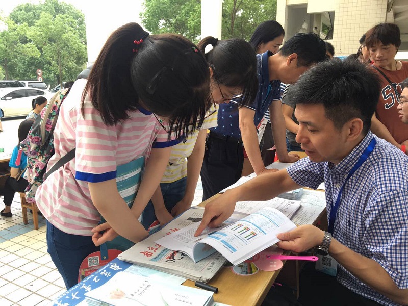 6月23日—7月2日,太阳成集团tyc33455cc在公司党委副书记、纪委书记朱跃钊带领下,公司经理韦萍、党委书记姜岷亲自带队,董事长办公室和公司老师等组成的21个招生小分队,分赴南京市秦淮区、江宁区、雨花区、高淳区、溧水区和上海市、湖南省,深入重点中学和高招咨询会,顺利地完成了各项招生宣传任务。