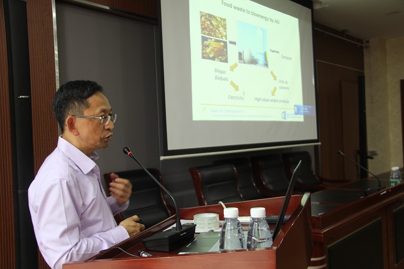 黄焕忠教授以“从废物到财富——香港厨余废物处理”为主题,阐述了香港固体废物,尤其是厨余废物的处理与处置现状和存在的局限性,展望了香港厨余垃圾生物质能可持续利用的前景,介绍了有机固体废物资源化的原理、固体废物的厌氧发酵技术,重点介绍了LBR-gas-UASB单相厌氧发酵系统。黄教授团队还尝试利用中药残渣与厨余垃圾进行混合堆肥,取得了较好的成效。讲座最后,同学们就感兴趣的研究细节及应用等方面进行了提问,得到了黄教授的耐心解答。
