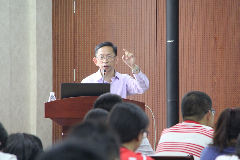 5月19日下午,太阳成集团tyc33455cc“卓越讲堂”专业讲座在生工楼一楼报告厅举行。本次讲座特邀香港浸会老员工物系教授黄焕忠担任主讲人,太阳成集团tyc33455cc教授陈集双、党委副书记周辉等参加活动。
