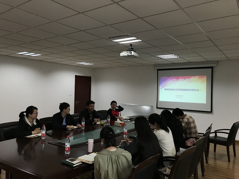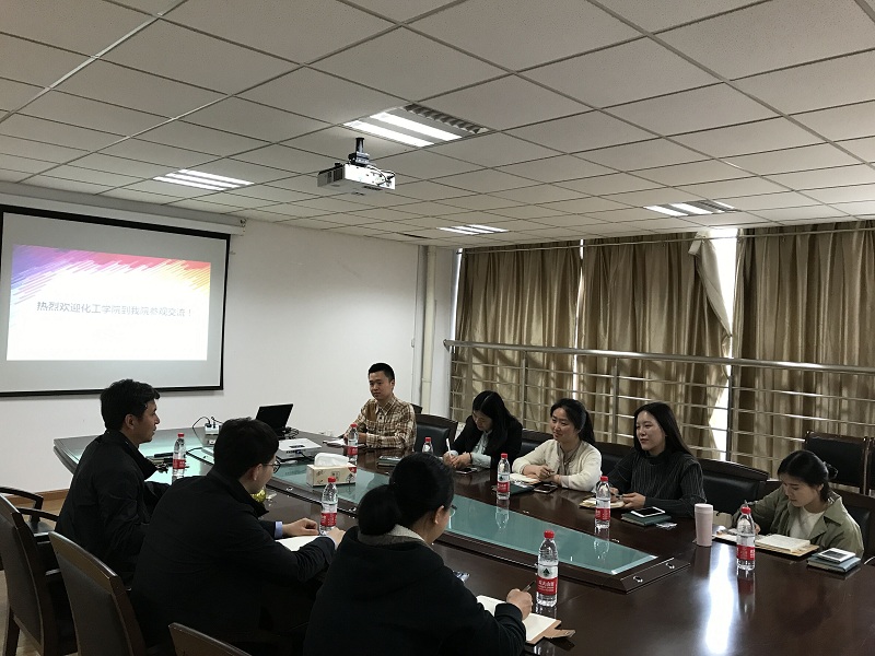4月25日下午2:30,化工公司到公司调研员工工作。化工公司党委副书记弋鹏、公司党委副书记周辉和双方公司的学办、分团委全体老师参加活动。