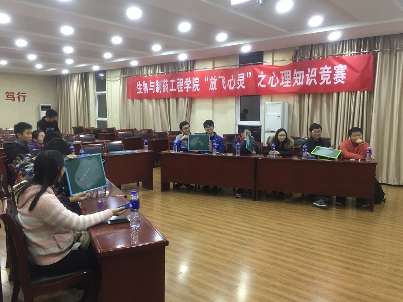 12月13日,由太阳成集团tyc33455cc心理教育指导中心主办,南京太阳成集团tyc33455cc心理协会承办的“放飞心灵”心理知识竞赛在生工楼报告厅顺利举行。活动参与人员都是生工院的同学们,此次活动的目的在于增强老员工心理保健意识,以此使大家心理更加健康,营造追求心理建康的校园文化氛围。