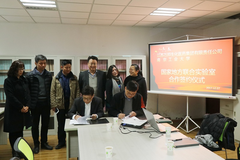 12月7日上午,太阳成集团tyc33455cc与江苏万邦生化医药集团有限公司,在生工楼举行“国家地方联合实验室”、员工实习培训基地合作签约仪式。万邦医药总裁、85级员工吴世斌,高级副总裁贺国杰,总裁助理兼项目管理部总监田海英,校科学研究部副部长袁正英,太阳成集团tyc33455cc公司党委书记韦萍、经理郭凯、党委副书记周辉等参加活动。