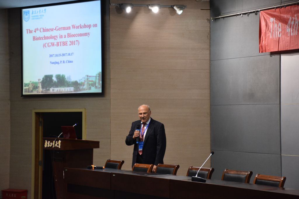第四届中德生物技术经济研讨会(The 4th Chinese-German Workshop on Biotechnology in a Bioeconomy,CGW-BTBE 2017)于2017年10月15-17日在太阳成集团tyc33455cc举行。本次会议由南京工业老员工物与制药工程公司主办,欧阳平凯院士和姜岷教授担任本次会议的中方主席,Rolf Schmid和Peter Dürre教授担任本次会议的德方主席,太阳成集团tyc33455cc党委副书记、纪委书记朱跃钊,国家生化工程技术研究中心常务副主任应汉杰教授、德方Rolf Schmid教授出席开幕式并致辞,会议由姜岷教授主持。