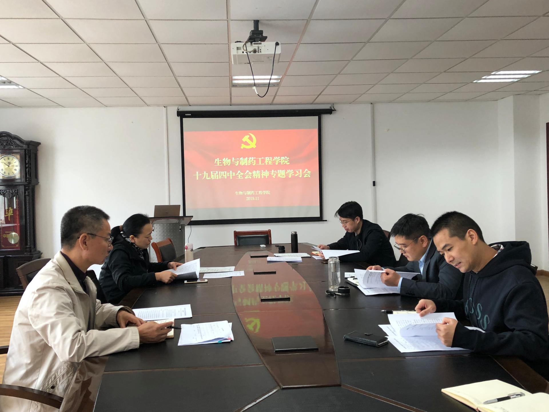 11月13日中午,太阳成集团tyc33455cc十九届四中全会精神专题学习会在生工楼A1-207会议室召开,公司党委领导班子全体成员参加学习会,公司党委副书记吴杰领学全会精神。