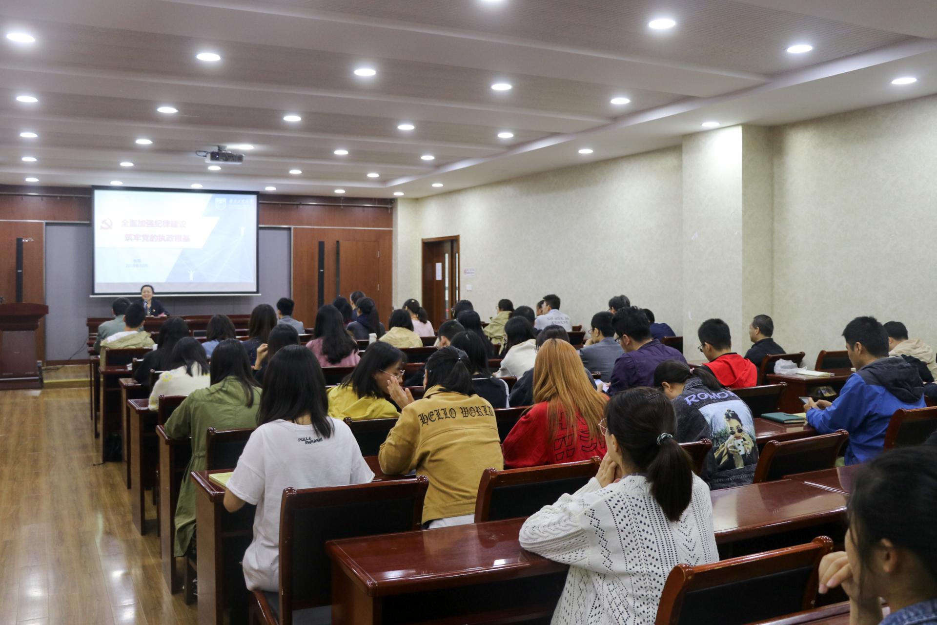 根据校、公司党委“不忘初心、牢记使命”主题教育工作安排,10月25日下午,公司党委书记韦萍向公司师生党员代表讲专题党课。