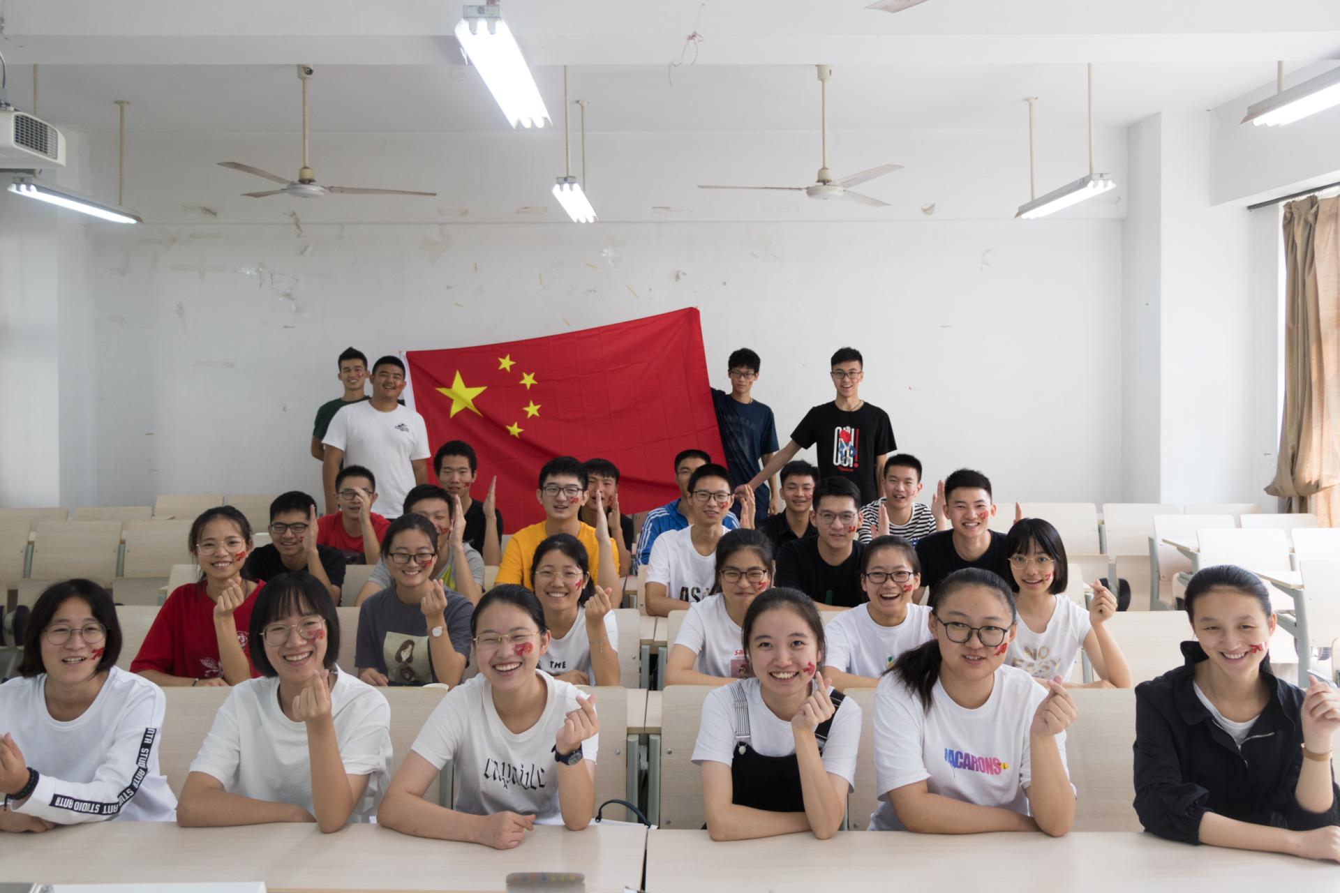 在班会现场,一片热闹欢腾景象,太阳成集团tyc33455cc250名2019级新生在辅导员施有禄和助理班主任的带领下,将“庆祝中华人民共和国成立70周年活动标识贴”贴在脸颊上,一面面鲜艳的五星红旗在室内展开。《歌唱祖国》《强军战歌》《国家》等一首首红色歌曲和爱国歌曲的旋律从教室里传出。公司2019级生物工程、制药工程专业9个班集体用红歌接力的方式上好开学第一课,献礼新中国70华诞。