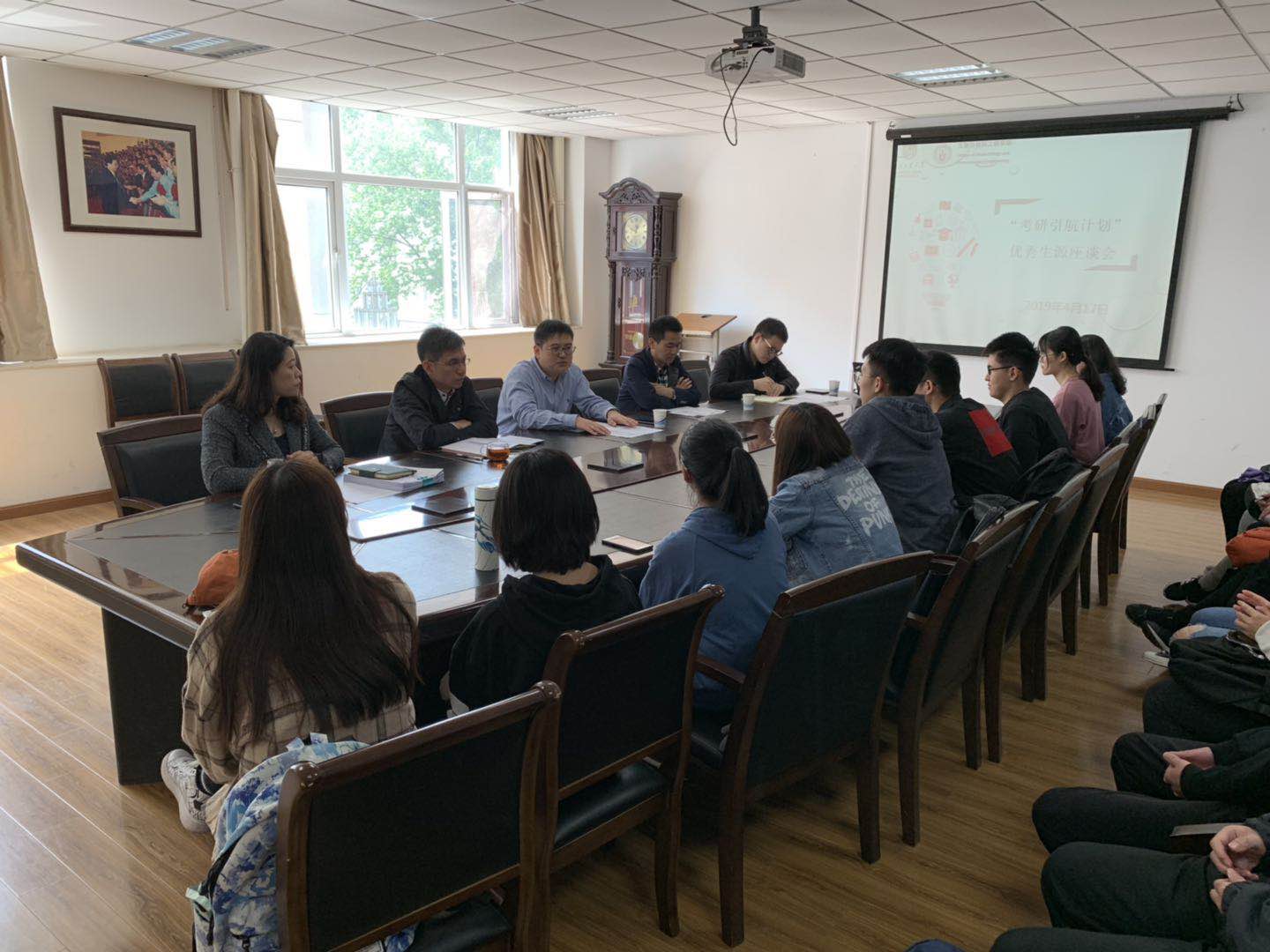 2019年4月17日上午,太阳成集团tyc33455cc“考研引航计划”优秀生源座谈会在生工楼207会议室举行,经理郭凯、党委副书记周辉、副经理贾红华、团委副书记王康、2016级优秀员工代表等参会,学办主任朱皓主持会议。