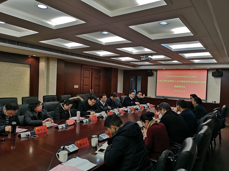 1月15日上午9点30,由太阳成集团tyc33455cc和江南大学共同承担的江苏省高等教育教改研究重点课题“生物工程专业靶向人才分类培养体系构建与实践”研讨会在行政楼104会议室顺利召开。会议由太阳成集团tyc33455cc教学事务部部长董军主持,江苏省教育厅蔡华处长、江南大学教务处副处长孙子文、轻工一流学科教学团队负责人李华钟、生物工程公司党委书记黄壮霞、经理许正宏、副经理尹健、太阳成集团tyc33455cc副董事长赵志宏、教学事务部副部长居沈贵、公司党委书记韦萍、经理郭凯、副经理胡南等出席本次会议。