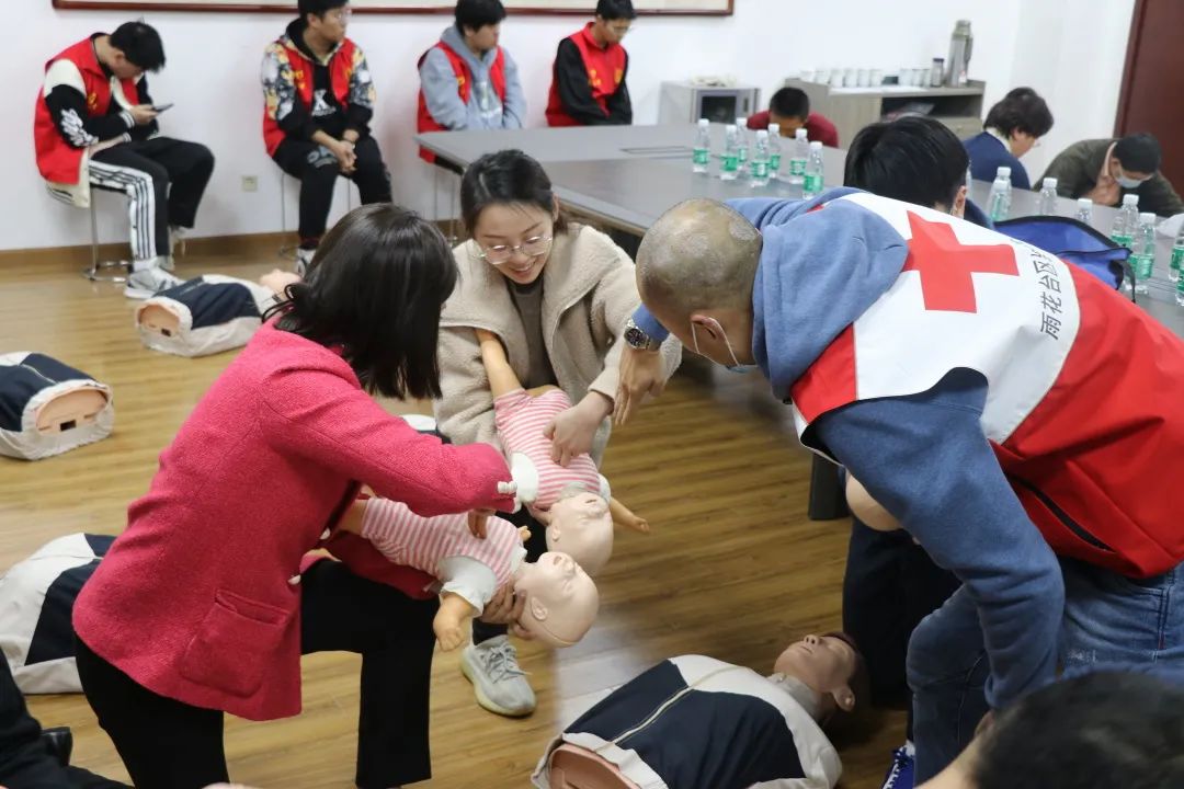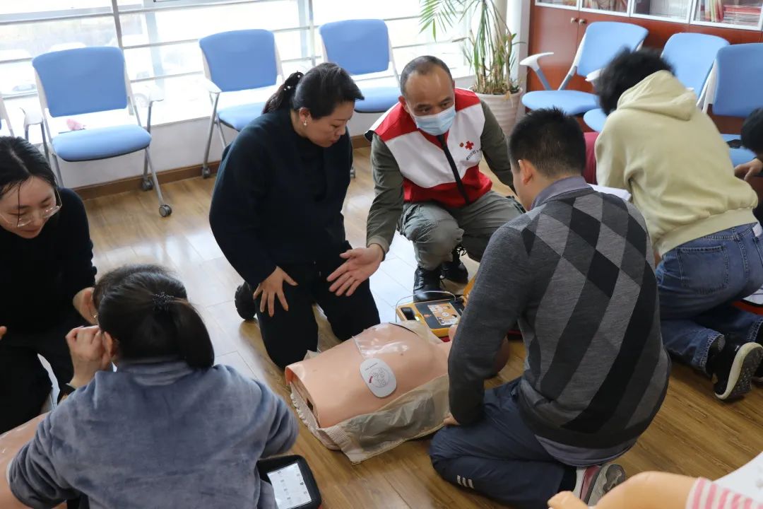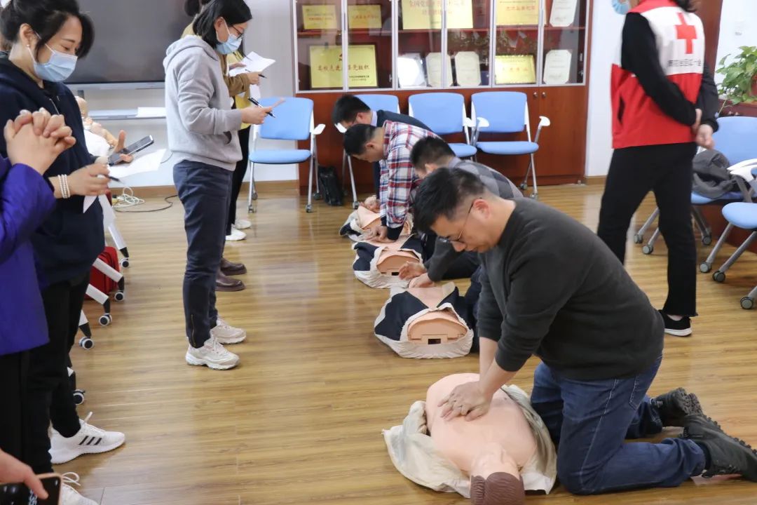 培训中,红十字会的讲师先对学员们开展了心肺复苏、自动体外除颤器(AED)和气道异物理论知识培训。在学员们掌握基本理论知识后还分班进行了实操,由红十字会讲师们亲身教学、示范与讲解急救要点。在考核中合格的学员获得《红十字救护员CPR+AED合格证》。