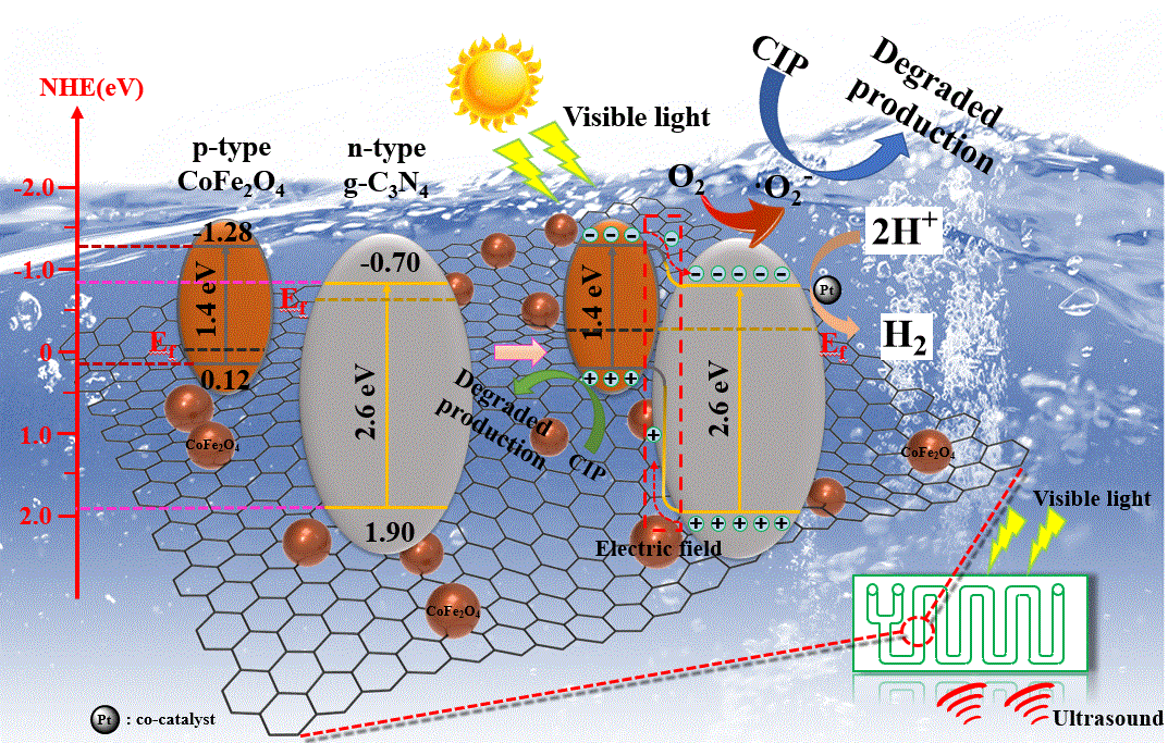 作为太阳成集团tyc33455ccK&k团队微流场与外力场耦合工作的重要进展,上述研究“Controllable morphology CoFe2O4/g-C3N4 p-n heterojunction photocatalysts with built-in electric field enhance photocatalytic performance”发表于Applied Catalysis B: Environmental(CiteScore=30.20, IF=19.5),太阳成集团tyc33455cc郭凯教授为通讯作者,何伟教授为第一作者。
