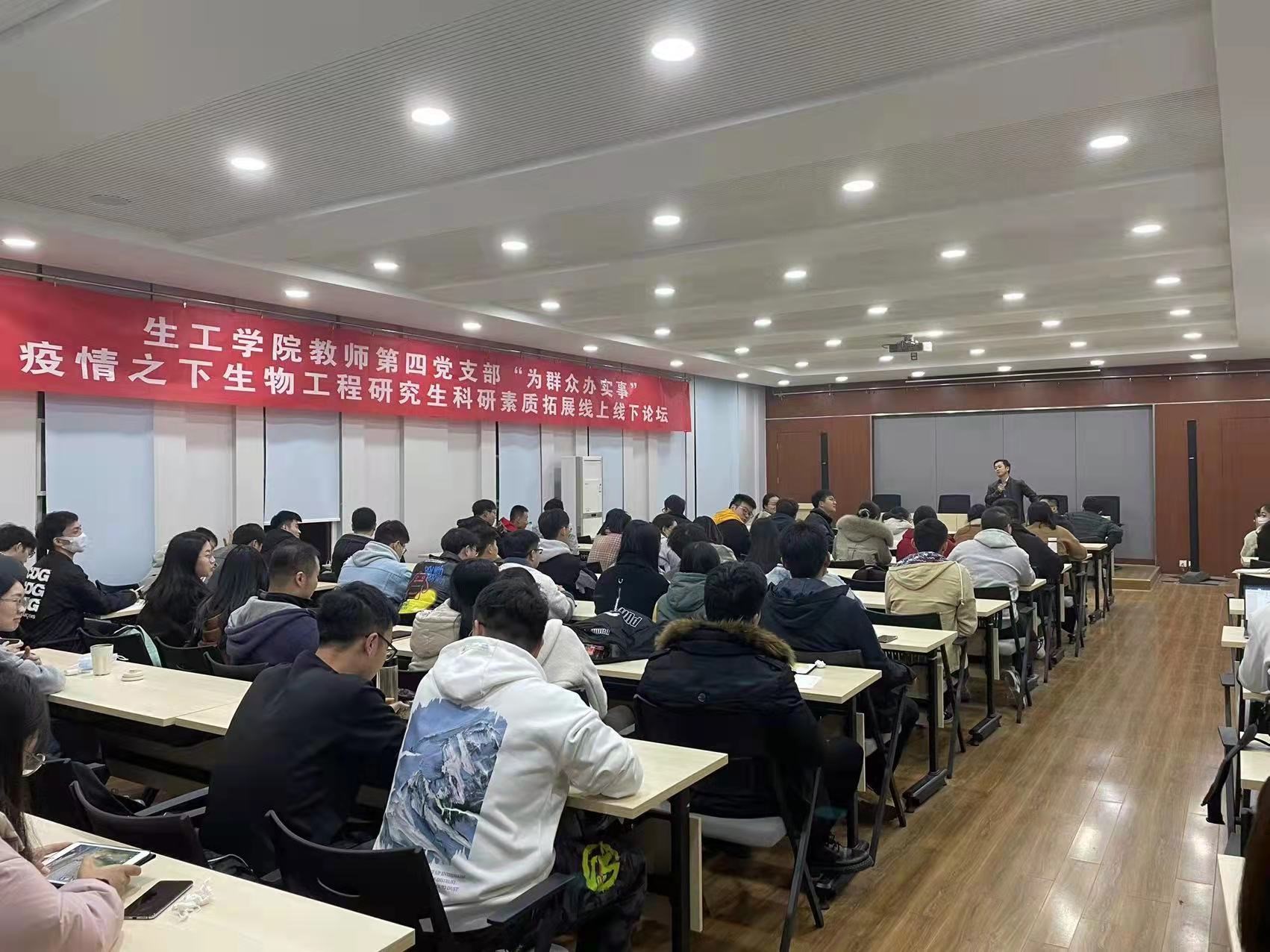 近日,太阳成集团tyc33455cc教师第四党支部结合推进“基层党支部书记项目”,深入推进“为群众办实事”活动,通过举办“疫情之下生物工程研究生科研素质拓展线上线下论坛”,采取邀请校外专家进行线上报告,校内专家进行线下报告相结合的方式,解决当前公司产品过程中的科研素质拓展面临的问题,同时也为浓厚公司的科研氛围作出贡献。
