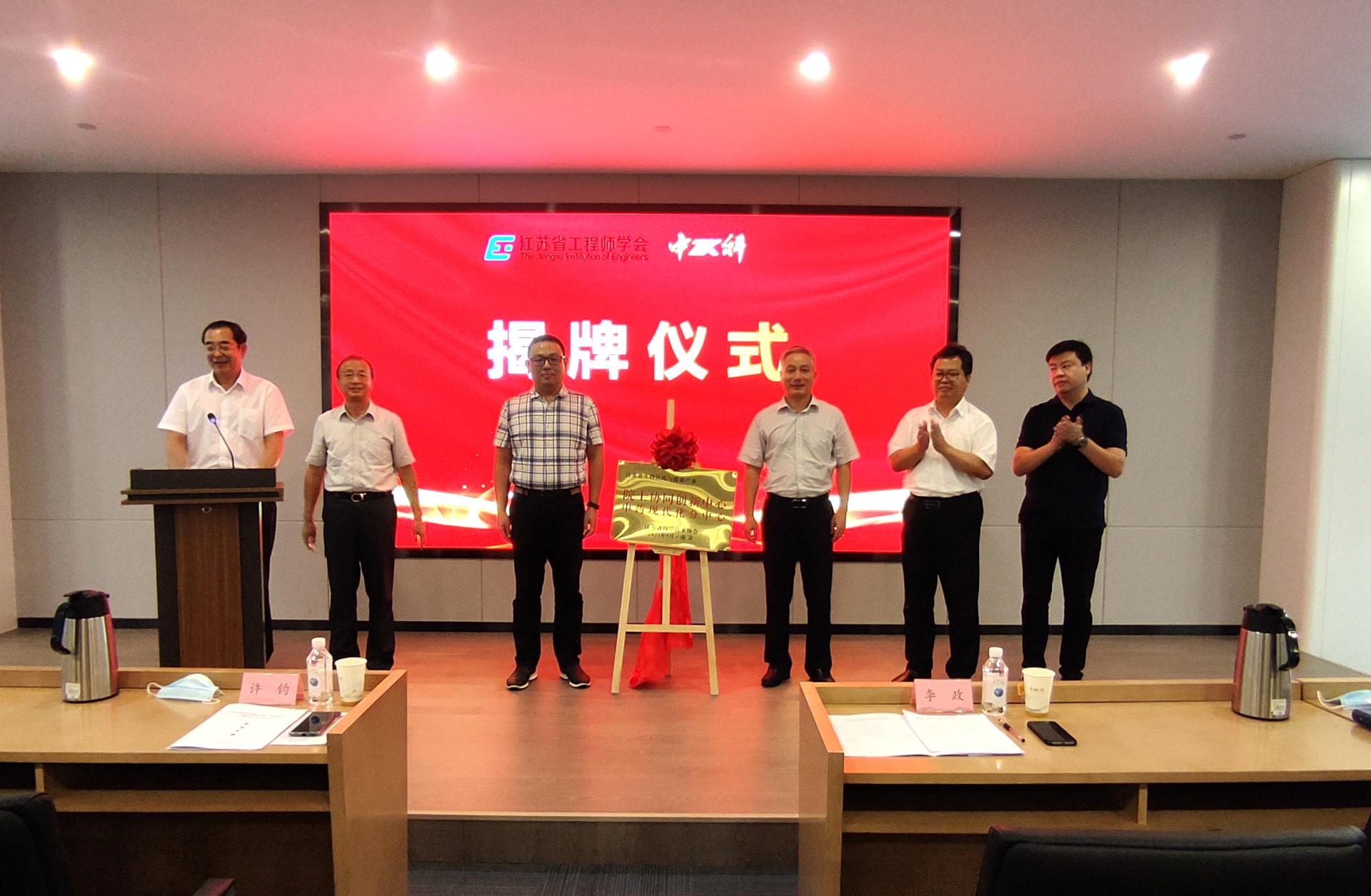 江苏省科学技术协会学会学术部部长、二级巡视员李政,公司党委常务副书记高振共同为江苏省生物医药与健康产业院士协同创新中心中药现代化分中心揭牌。江苏省工程师学会常务副理事长许钧、南京市科学技术协会副主席刘启祥、江宁开发区科学技术协会副主席孙伟和中科健康产业集团董事长王连安参加揭牌仪式。