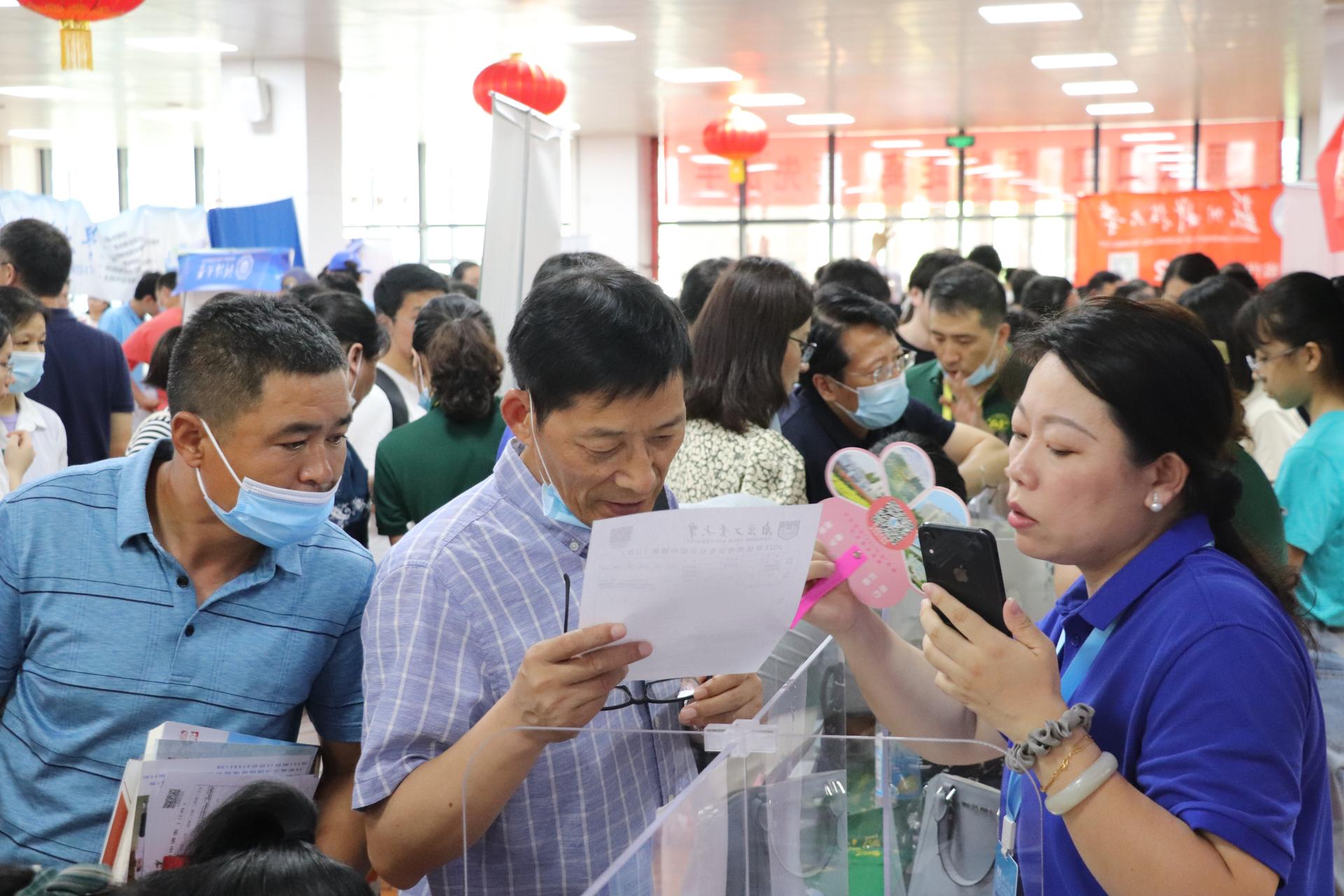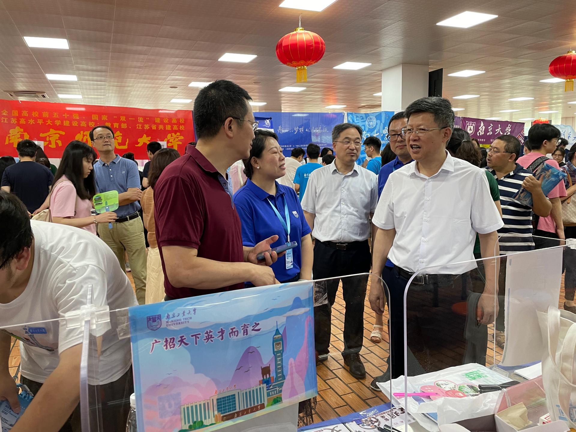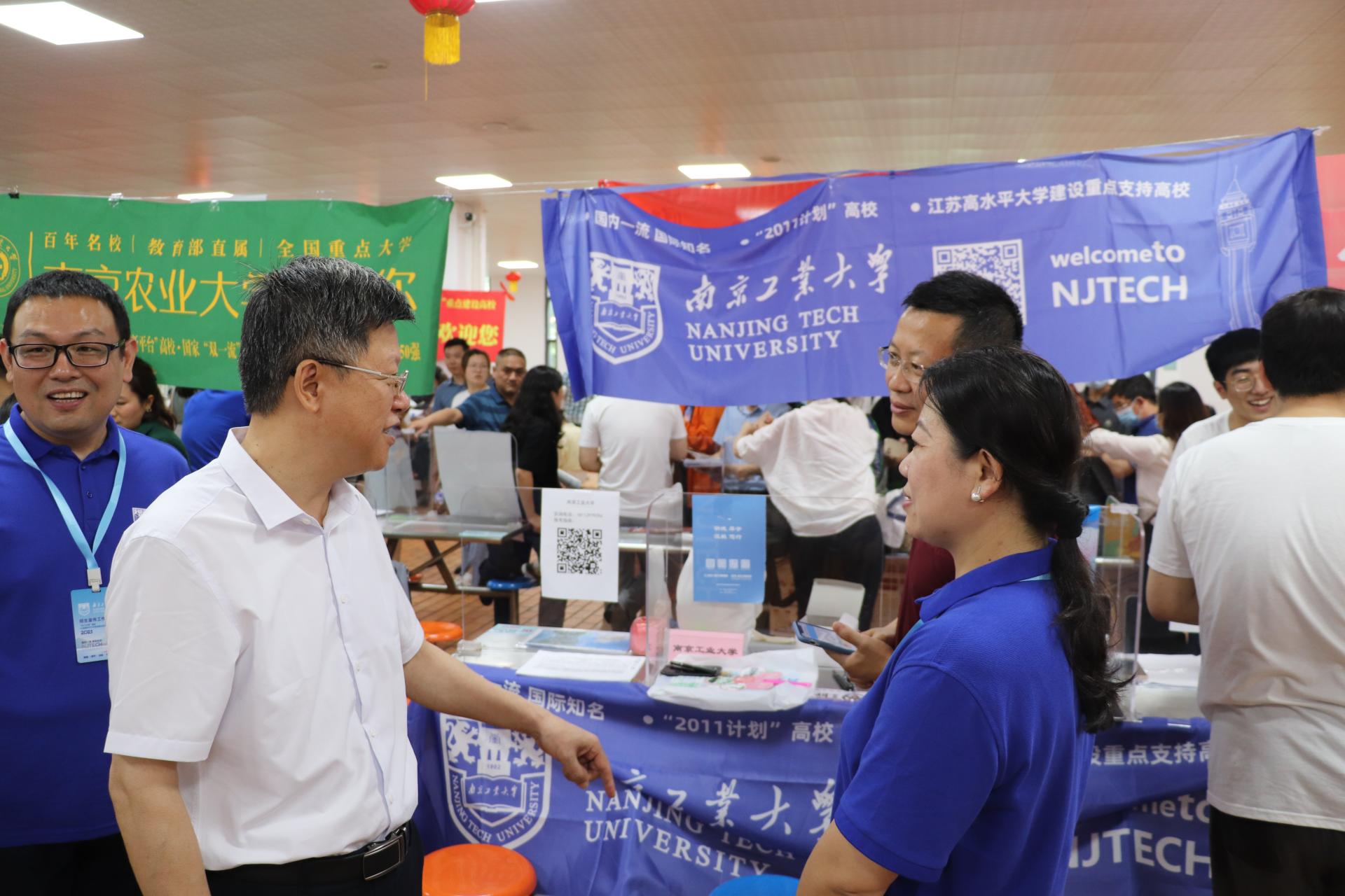 在中华中学招生宣传现场,芮鸿岩书记、凌祥副董事长与中华中学有关负责人进行了亲切交流,介绍了公司历史沿革、学科特色、人才培养、团队力量、校园文化和近年来取得的成就,并与考生和家长进行了深入的交流。芮鸿岩书记亲切慰问了负责中华中学招生宣传的太阳成集团tyc33455cc师生招生志愿者,详细询问了招生进展情况,叮嘱大家要劳逸结合,注意疫情防控,以饱满的热情和精神状态投入招生宣传工作。