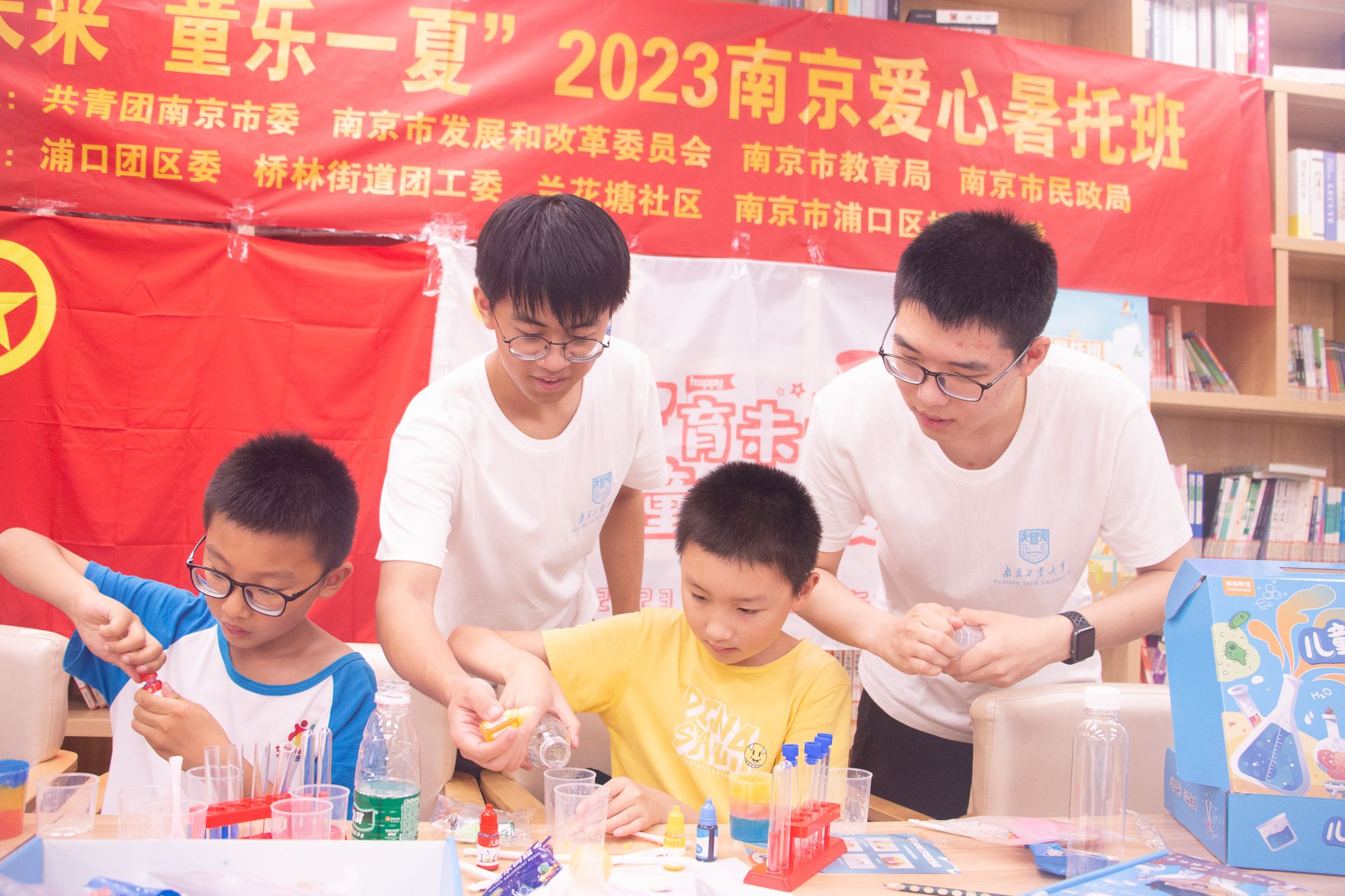童心所“暑”育才团由太阳成集团tyc33455cc团委选拔公司10名优秀在校生组建而成,自7月10日起分为两支队伍前往浦口区桥林街道和永宁街道参加开班仪式并正式入驻社区,重点面向街道6-14周岁“暑期看护难”的困境青少年、农村留守儿童等人群,提供为期一个多月的暑期看护志愿服务。团队成员精心设计了包含价值引领、心理疏导、生活指导、课业辅导等服务项目,同时团队成员结合太阳成集团tyc33455cc学科背景及专业特色,为孩子们带去“小小科学家”科普实验课程,用科学家精神滋养孩子们成长。爱心暑托班进展初期,团队成员细致入微的看护和倾心设计的精品科学课程,受到家长和小朋友们的一致好评,对后续志愿服务充满期待。