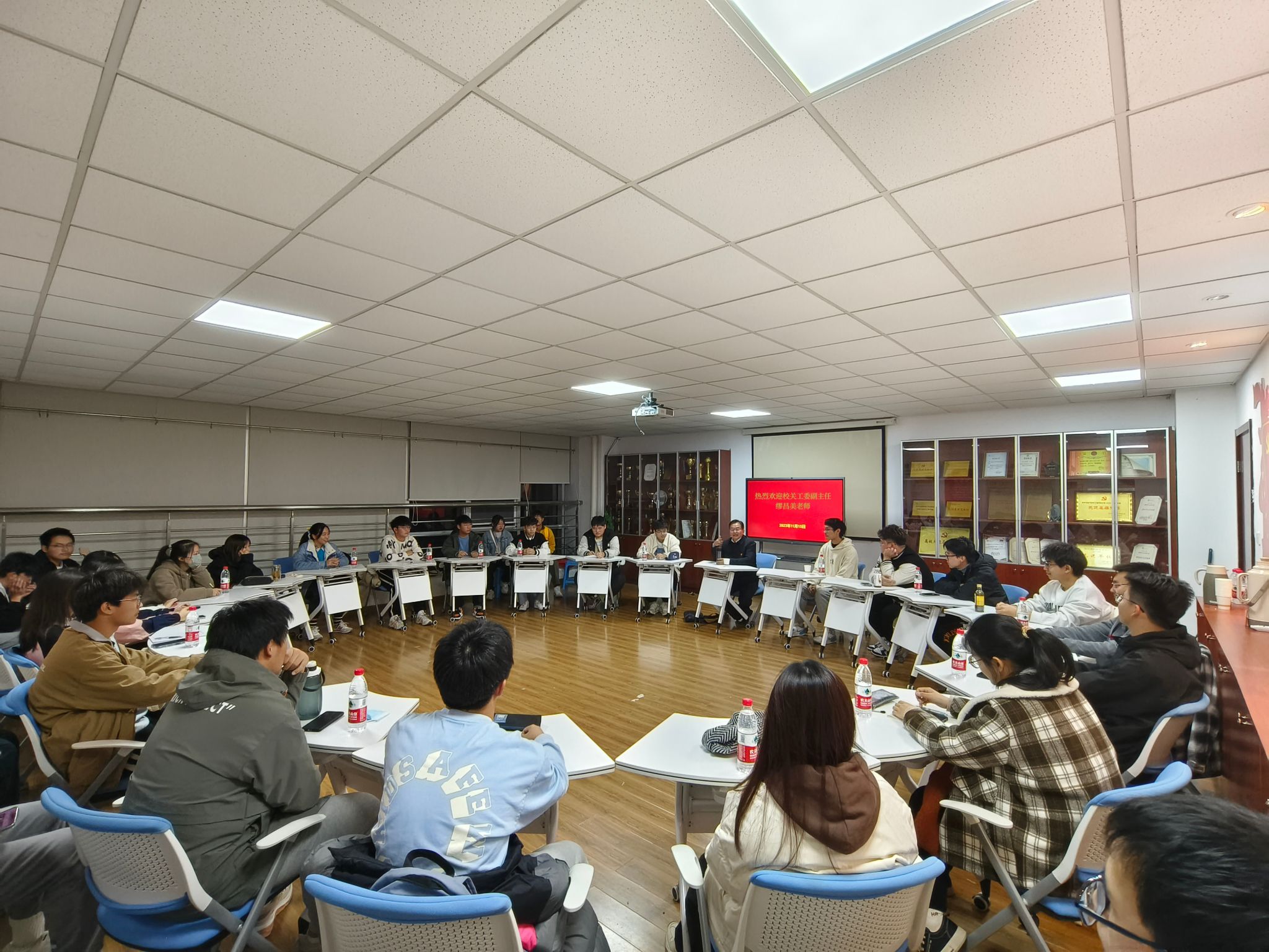 缪昌美老师结合多年基层工作经验,强调年轻人要有精气神、眼中要有光。座谈会中缪老师对欧阳平凯院士的“忠诚精实”精神进行了深入剖析解读,向同学们提出了“三个管理”要求,希望同学们能在信心、目标和实践三个方面实现高效管理,在校期间要深入结交图书馆和运动场这“两个朋友”的亲切建议,鼓励同学们要充分发挥自身主观能动性,期盼同学们能够真正实现“德智体美劳”全面发展。座谈会中,每位同学分享了自己入学以来的感受和存在的困惑,缪老师逐个给予关心指导。最后,缪老师希望同学们能够以务实的精神做好每一件事,将工大精神、工大校训落实到自己的人生当中,希望每位同学在未来都能肩负起新时代的重任。