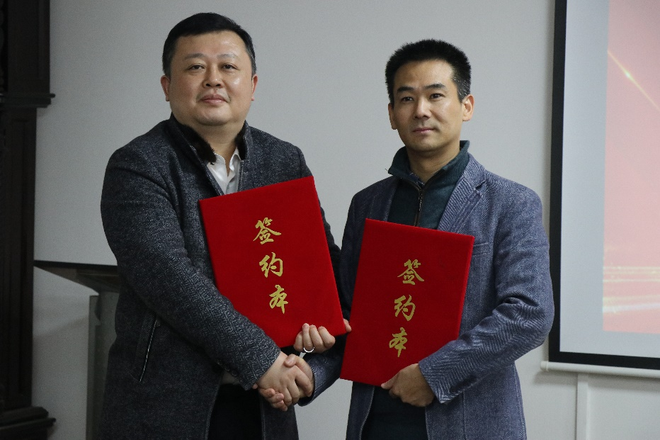 贾红华副经理和张宁副主任签署共建预创实验室合作协议,周治主任和陈可泉副经理为公司首批预创实验室揭牌,朱颐申、张琪和张宁分别签署项目入驻协议。创业项目指导教师代表朱颐申和张琪分别介绍项目,并作出入驻预创实验室之后的规划。创业项目员工负责人代表王莹对所创业项目和后期计划进行了详细汇报。