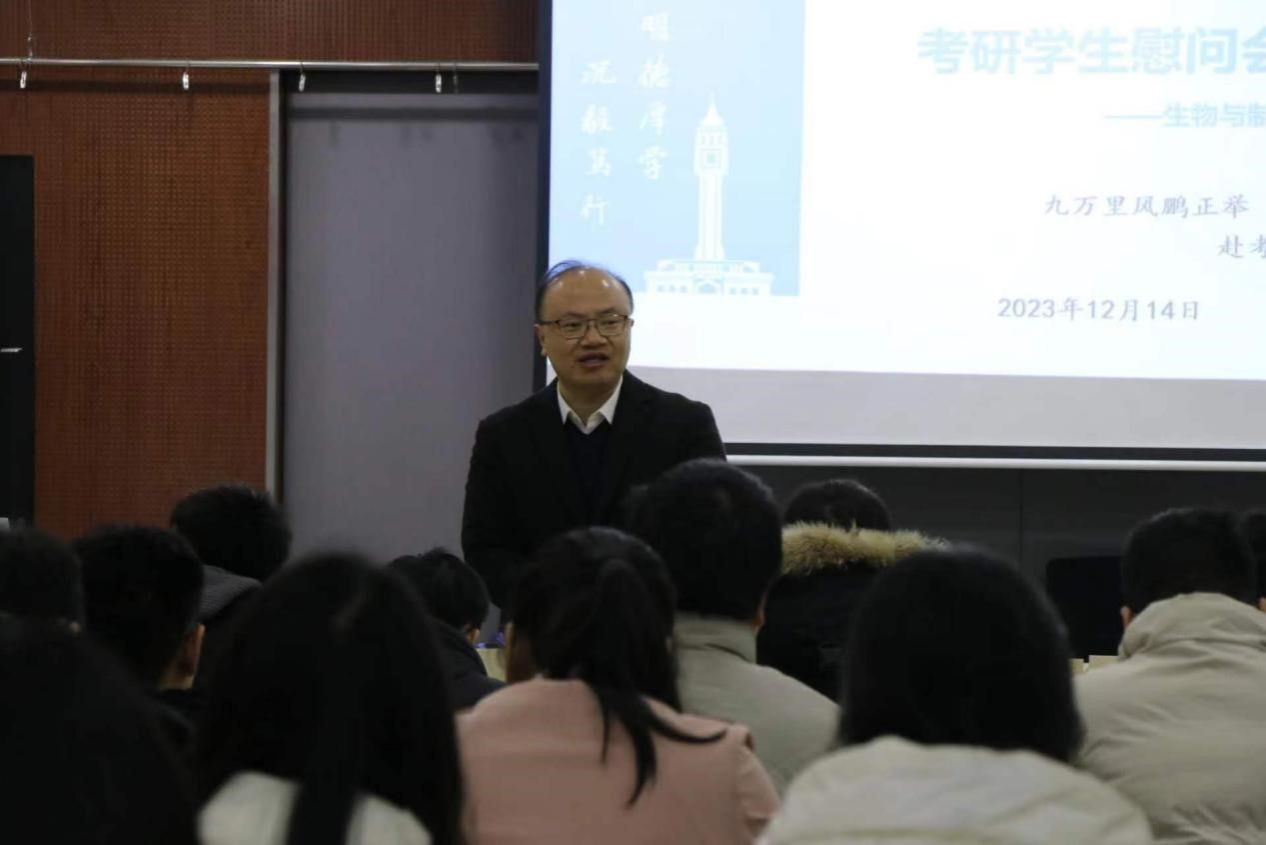 贾老师在讲话中强调同学们做好考研过程和毕业要求相统一,不忘考研初心,明确奋斗目标,包括毕业论文质量等都会为读研作铺垫。
