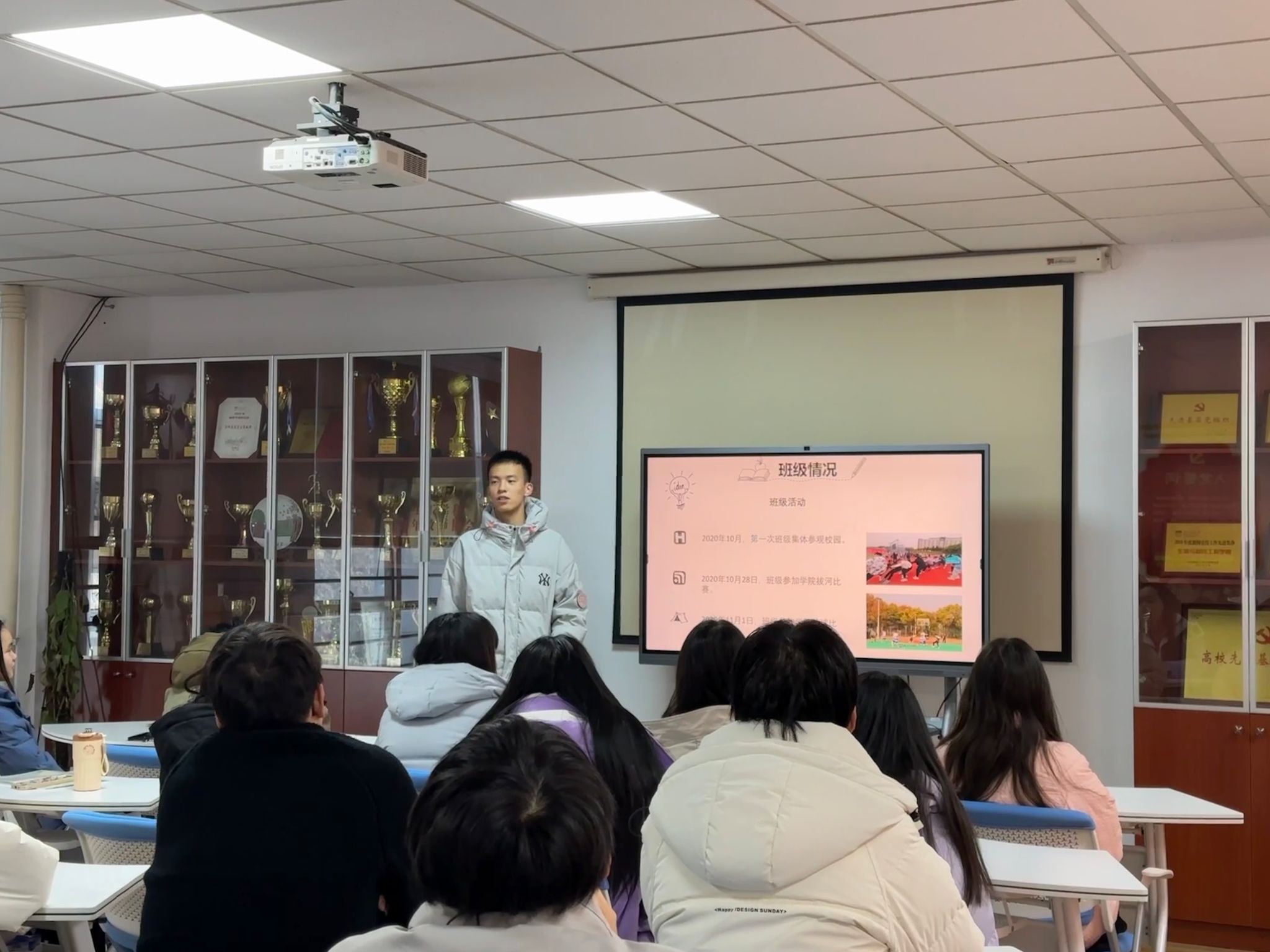 交流会伊始,班长龚佳晖介绍了班级的基本情况,汇报了入学至今班级同学取得的优异成绩与各项荣誉,苏老师表达了对班级同学所获成绩的肯定,方经理鼓励同学们积极分享生活经历和毕业后的职业规划。