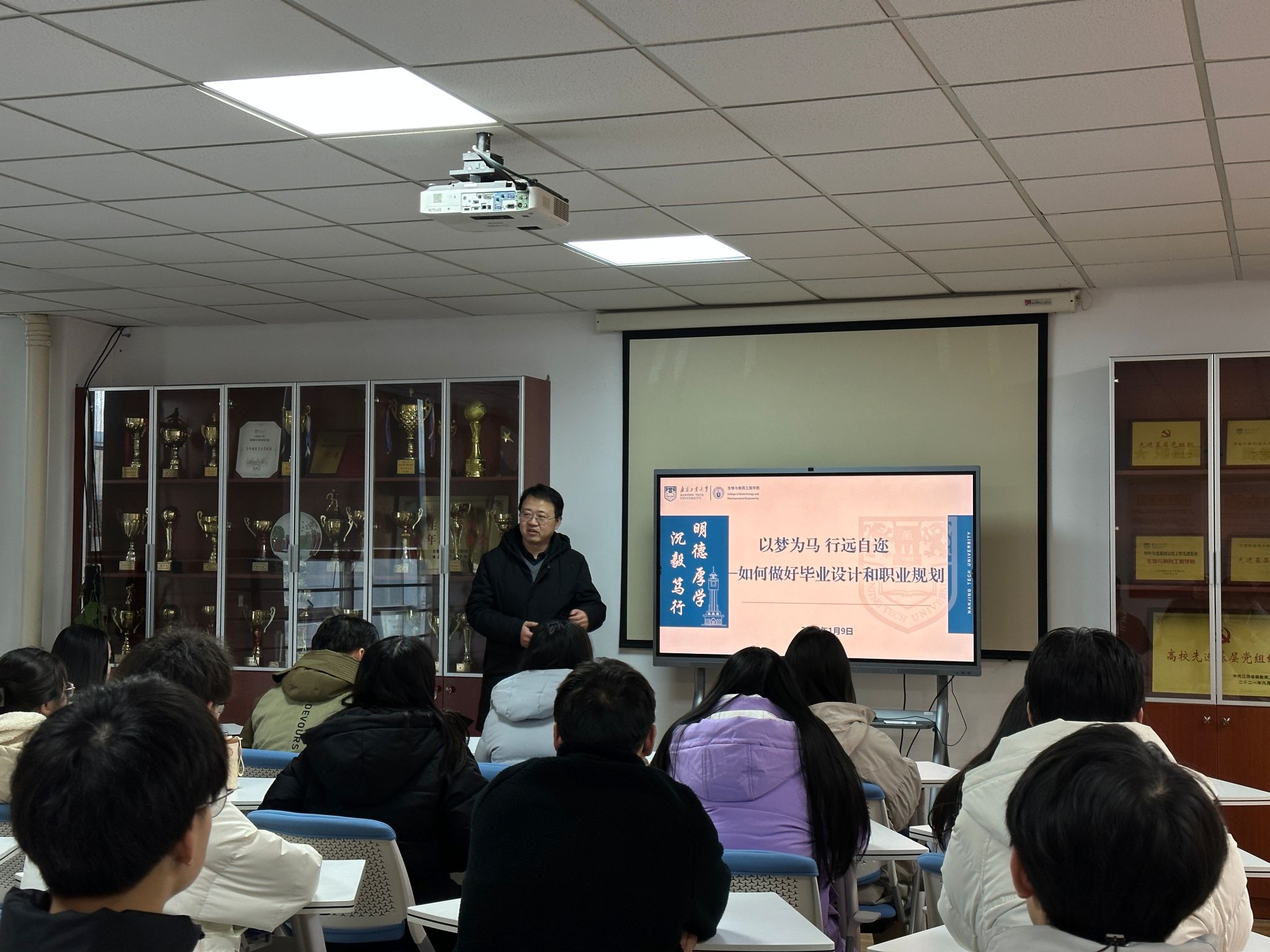交流会中,方老师为制药2002班同学开展了一场主题为“以梦为马,行远自迩—如何做好毕业设计和职业规划”的微讲座。方老师首先强调了毕业设计的重要性,指明完成好毕业设计对员工的逻辑思维和处理问题的方式都有着深远的影响,建议员工们一定要认真对待毕业设计。在职业规划方面,方老师从本专业的就业前景、社会的就业形势和个人的行为习惯等方面为同学们展开了详细的讲解。此外,方经理还分析了当前考公考研和就业形势的变化,旨在让员工明确自己的人生目标和职业规划,肯定当代年轻人对社会工作和工作职场做出的改变。最后,方经理对班级员工给予了深刻的关心,强调在走好人生漫长路途的同时,身体健康才是第一位,鼓励员工们培养多方面的能力,做好未来生活和工作上的平衡。