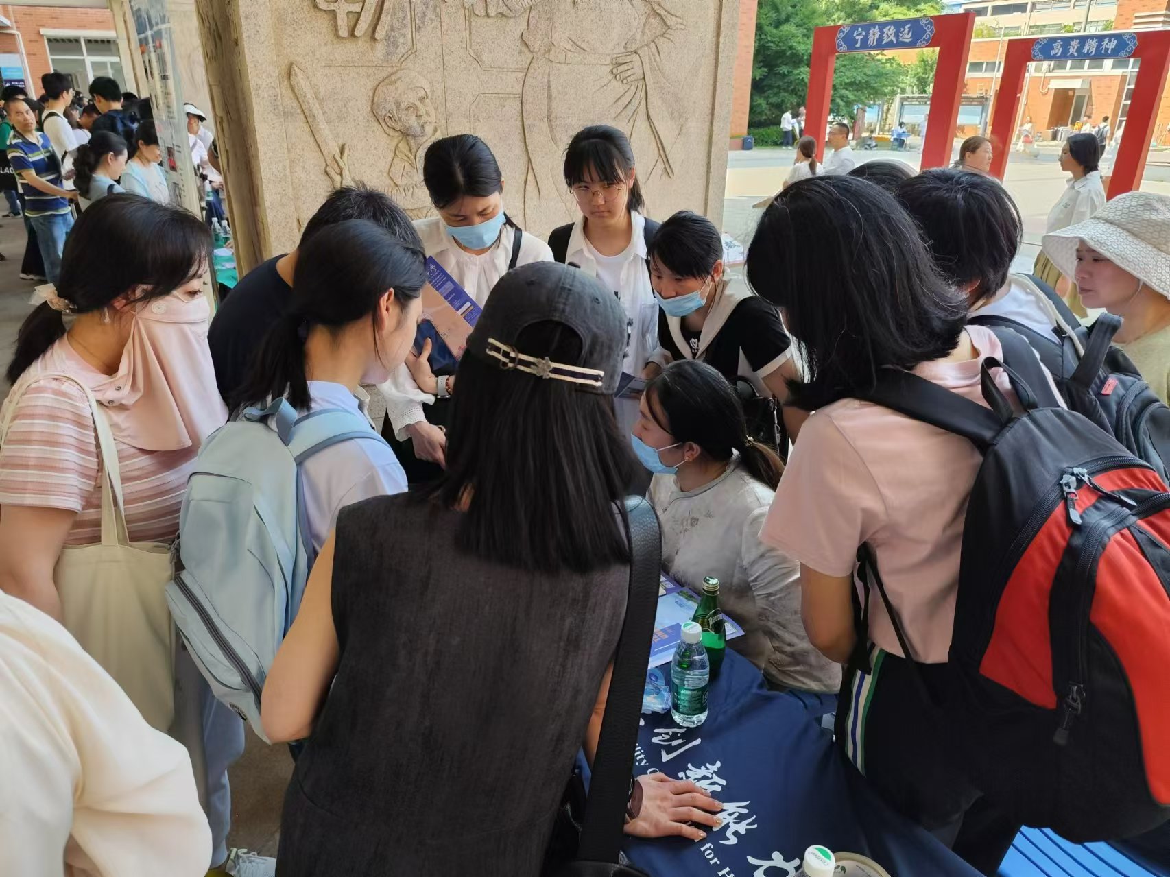 在公司招生宣传点前,众多员工家长和天印高级中学员工围绕公司优势学科、硕博点、员工成长平台和专业竞赛情况进行咨询,并对公司中外合作办学模式表示高度认可。在近4个小时的咨询中,招生小组始终以饱满的热情为考生家长、员工提供细致的解答,并发放了相关招生宣传资料。